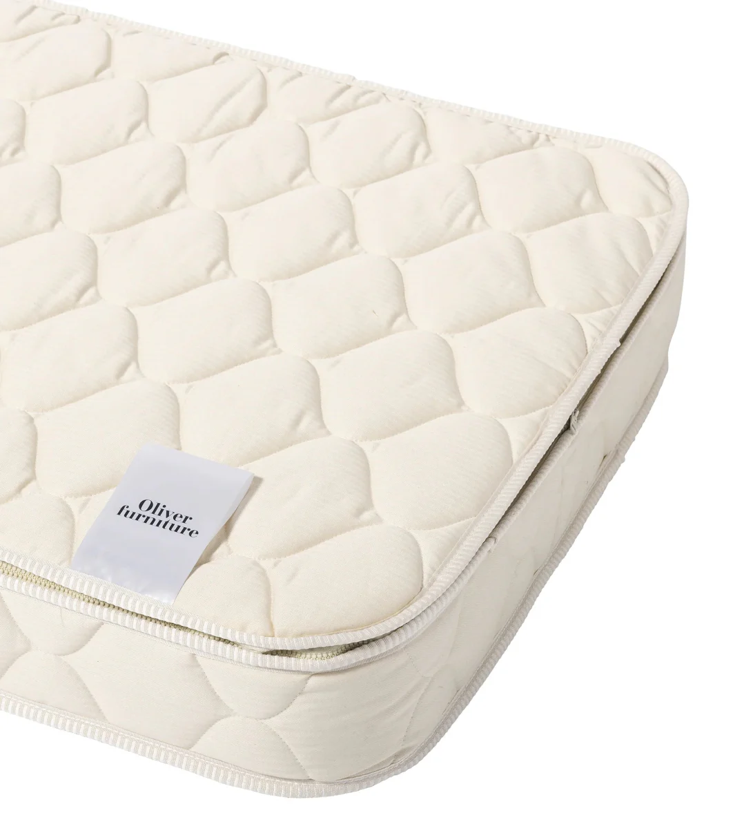 Ajoutez un matelas aux coins arrondis, parfaitement ajusté aux dimensions du lit Mini+, pour un confort optimal et une sécurité renforcée — aucun espace vide, aucune perte de douceur.