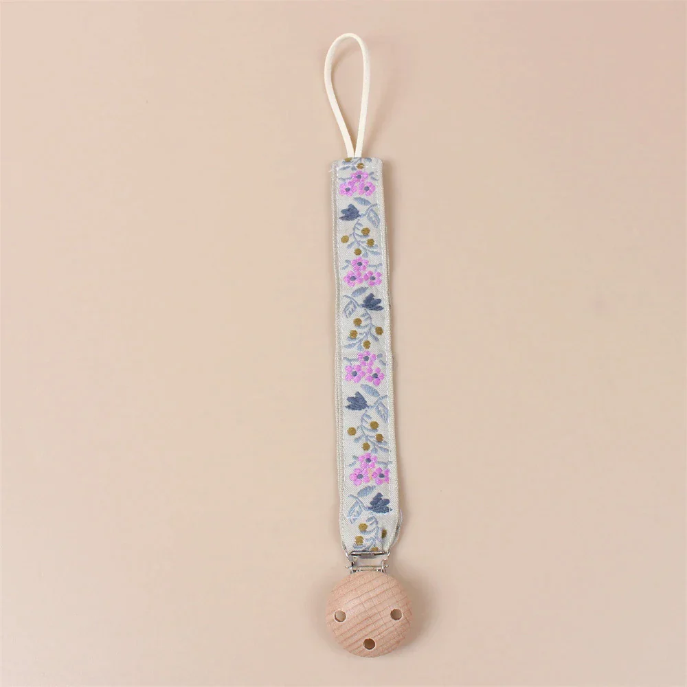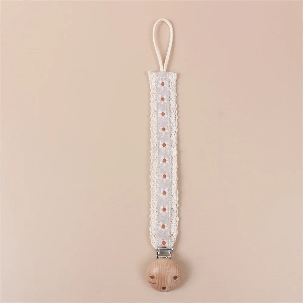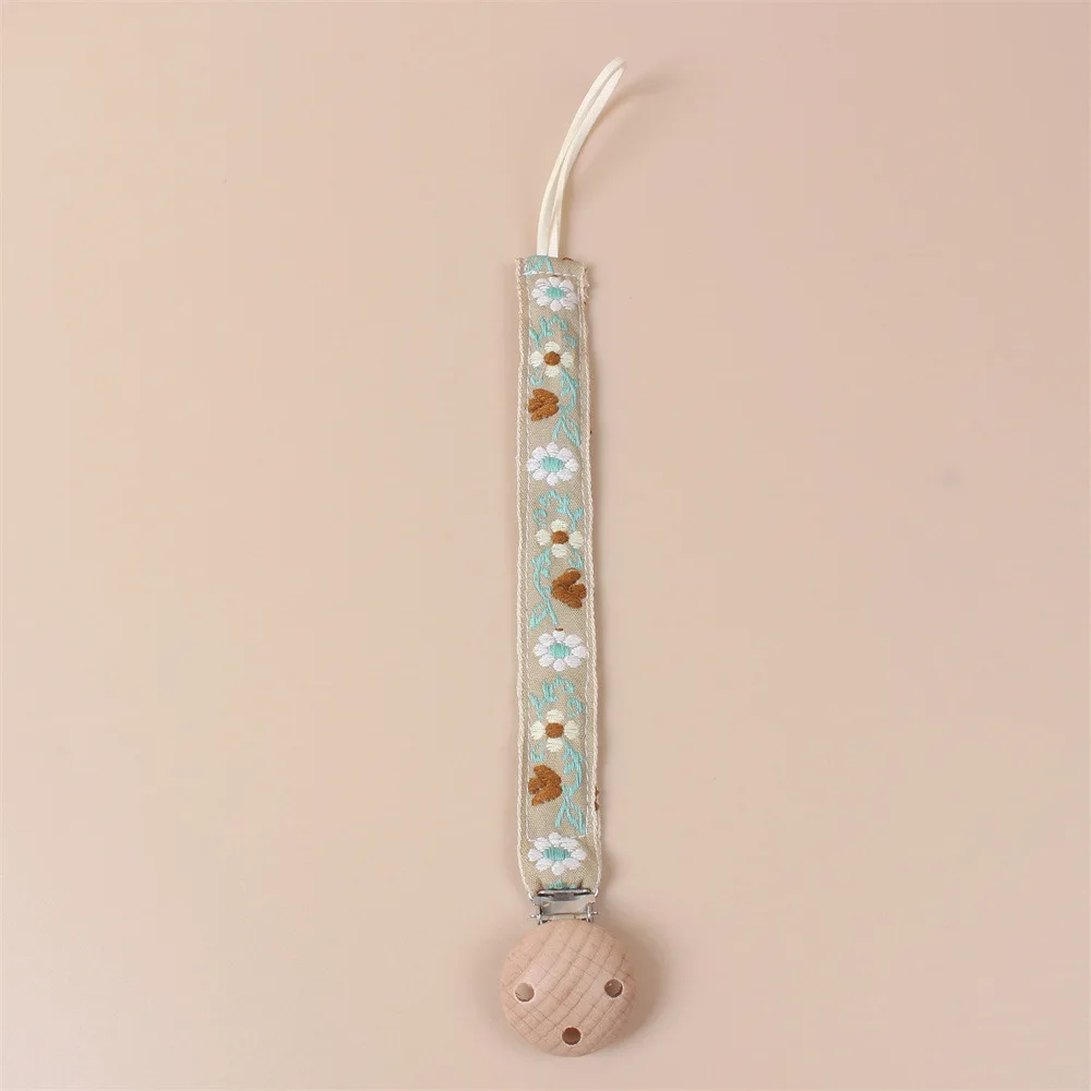 Attache Tétine Brodé avec Motifs de Petites Fleurs d’Été – Confort Naturel et Style Charmant pour Bébé
