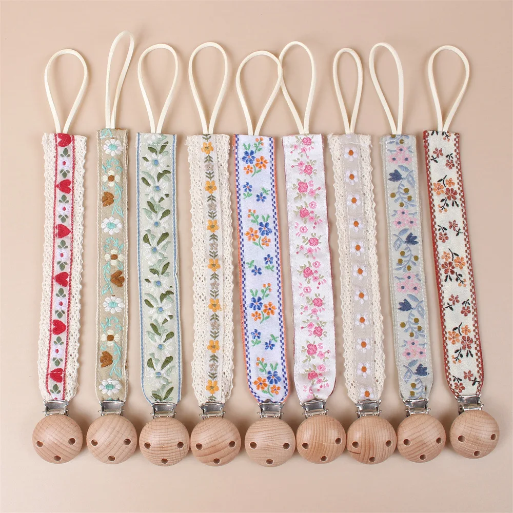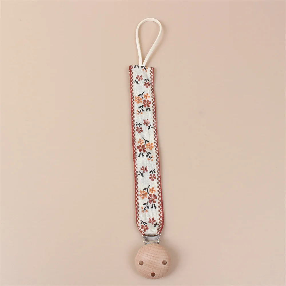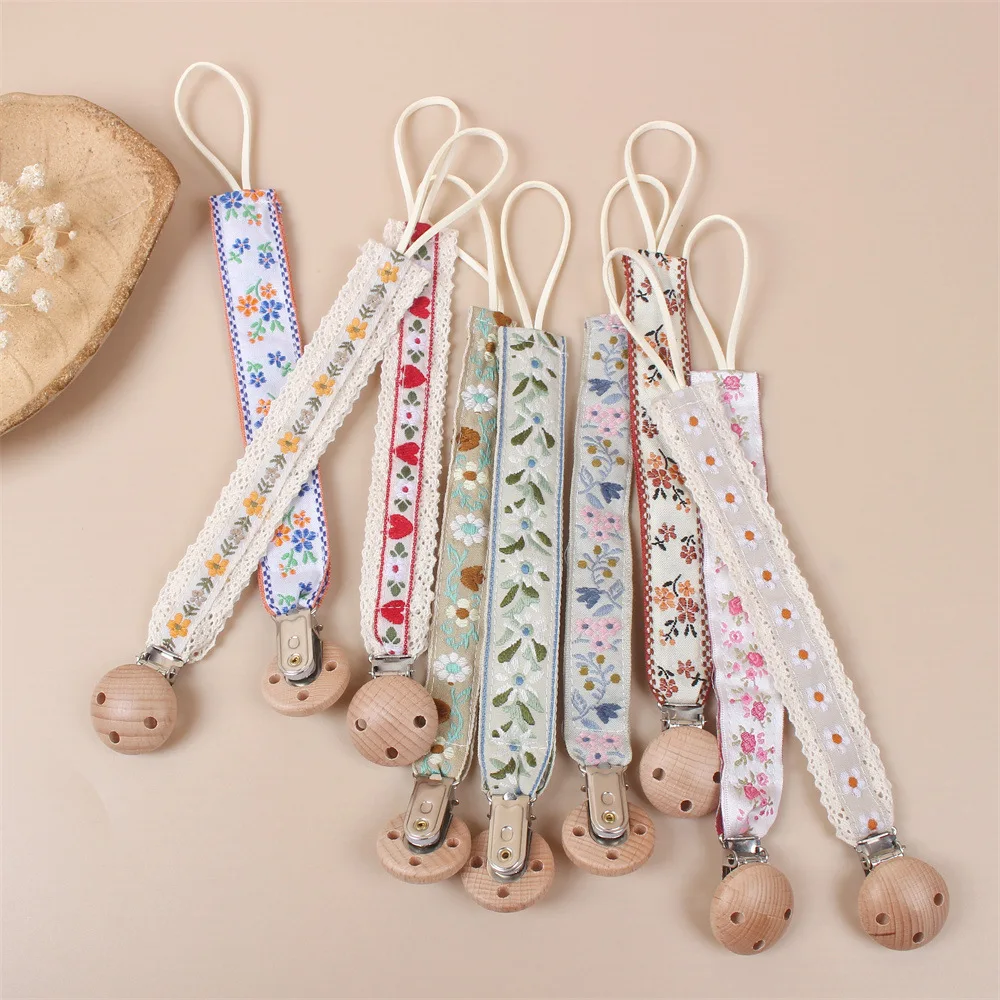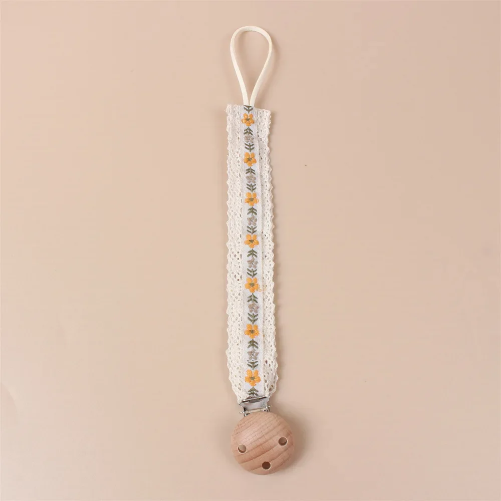 Attache Tétine Brodé avec Motifs de Petites Fleurs d’Été – Confort Naturel et Style Charmant pour Bébé