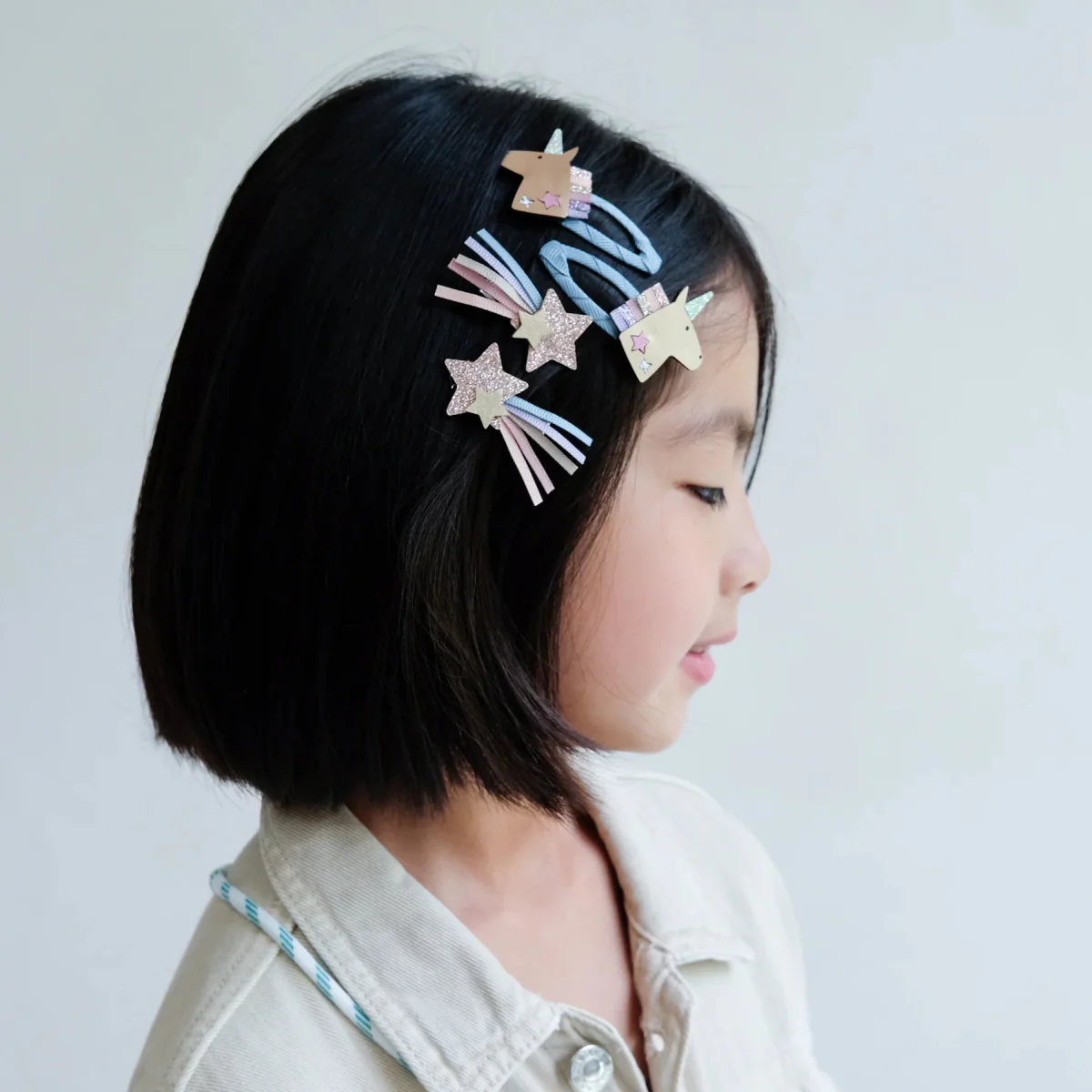 Faites briller leur imagination avec nos clic clacs magiques Licorne de Mimi & Lula, des accessoires parfaits pour compléter un déguisement enfant ou pour styliser leur crinière avec une touche féerique. Ces barrettes scintillantes sont non seulement ultra brillantes, mais aussi solides, idéales pour tenir toutes les coiffures en place.