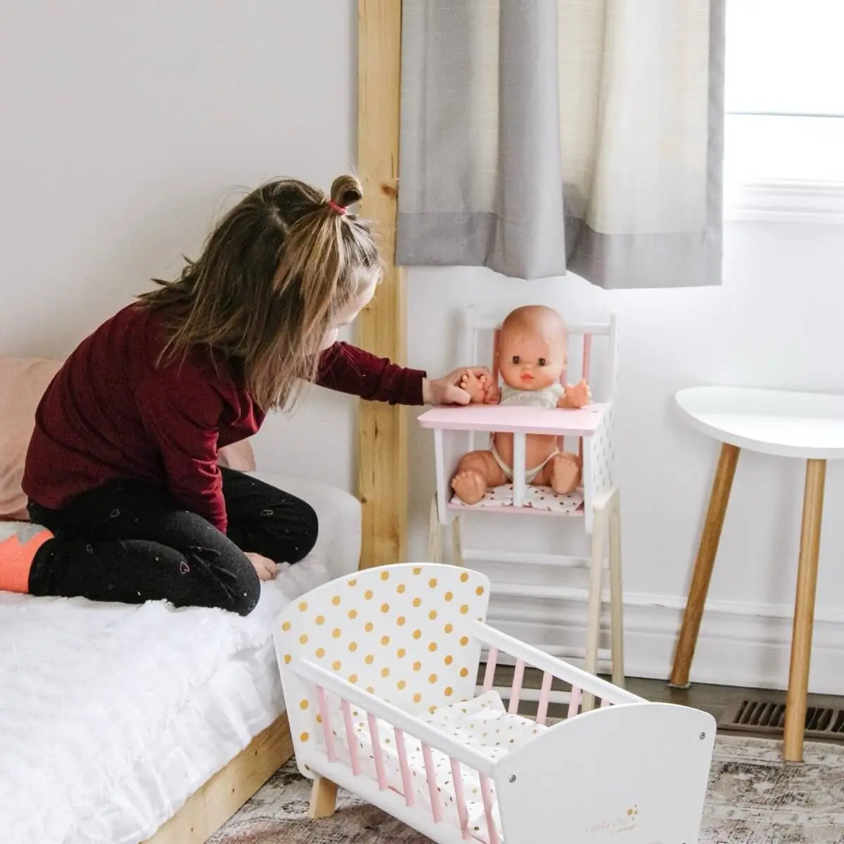 Les enfants vont adorer s’inventer des histoires avec leurs poupons préférés grâce à cette chaise haute en bois, très réaliste et robuste.