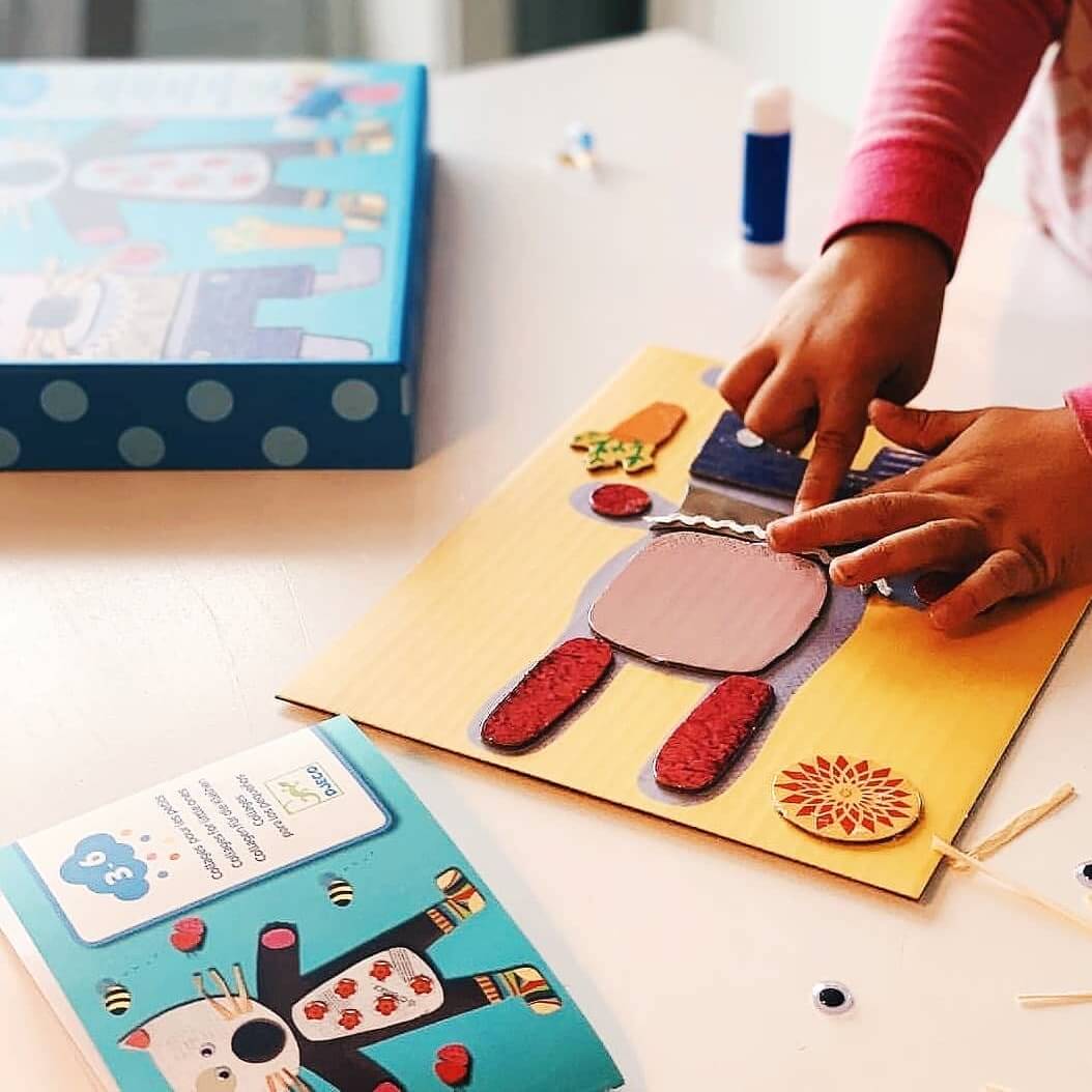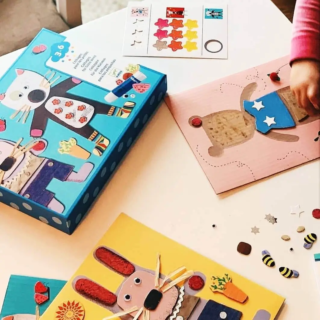 - Un coffret de collages créatifs destiné aux petits pour créer des animaux rigolos.