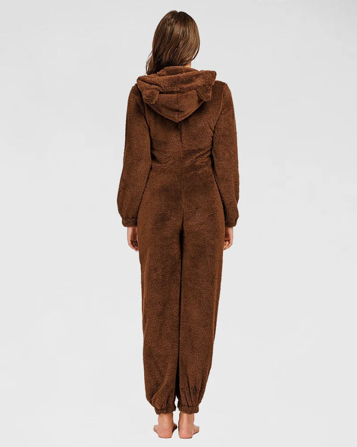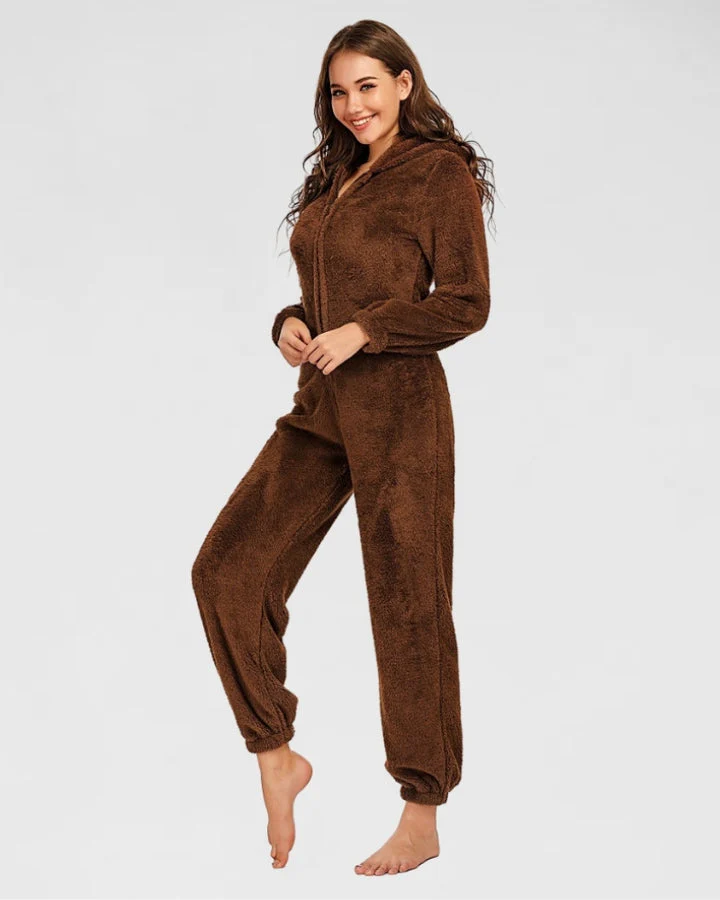 Combinaison Pyjama Polaire Marron Femme Chaude.
