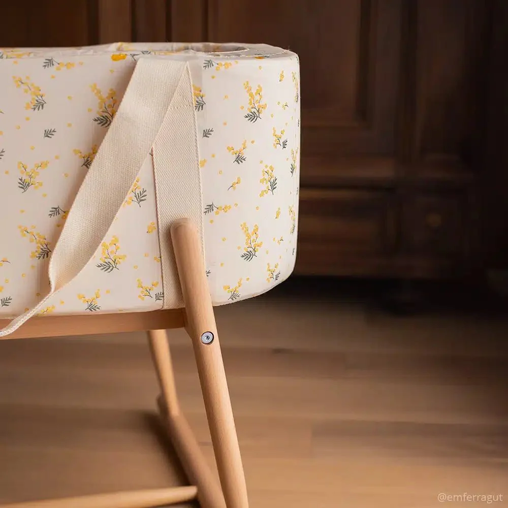 Offrez à votre nouveau-né un cocon de douceur avec le couffin KUKO Charlie Crane, habillé du délicat motif Mimosa signé Garbo & Friends. Idéal dès la naissance, ce couffin léger et transportable accompagne votre bébé dans chaque pièce de la maison, ou même en voyage. Il se transforme en un berceau à bascule apaisant grâce à son support en bois (en option).