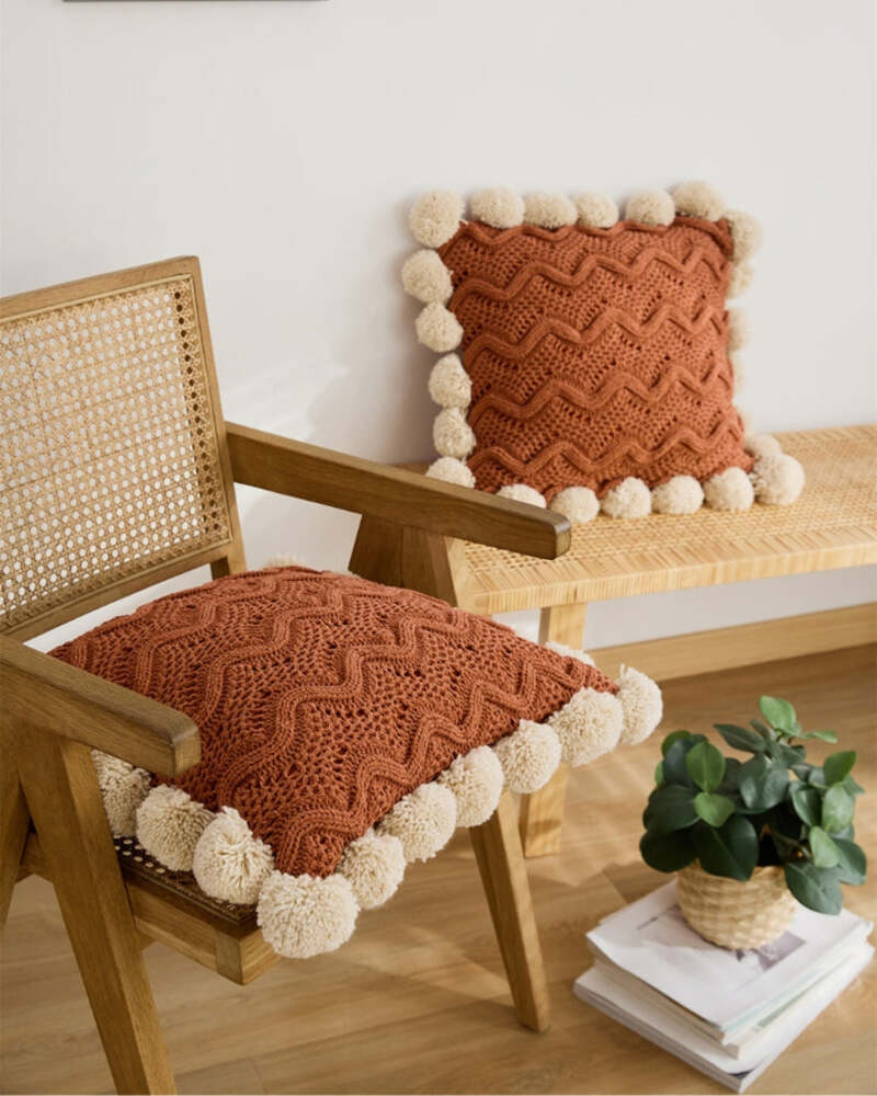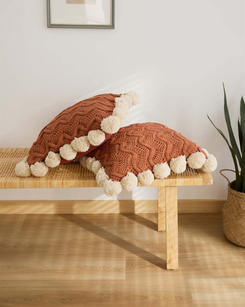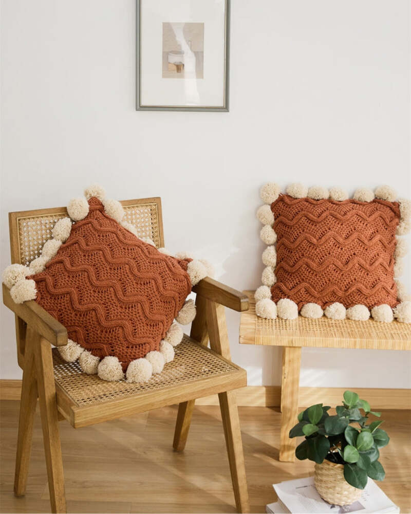 La couleur marron de cette housse de coussin ainsi que ses motifs vagues lui donnent un style très design, idéal pour tous les coussins 45x45cm.