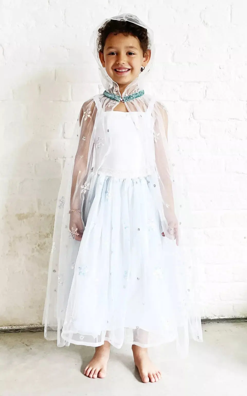 Vivez comme une vraie princesse des glaces en enfilant ce déguisement fabuleux! Cette cape bleue est conçu pour se glisser facilement dans un rôle de conte de fées. Un accessoire parfait pour qu’il n’y ait plus de glace entre votre look et votre imagination.