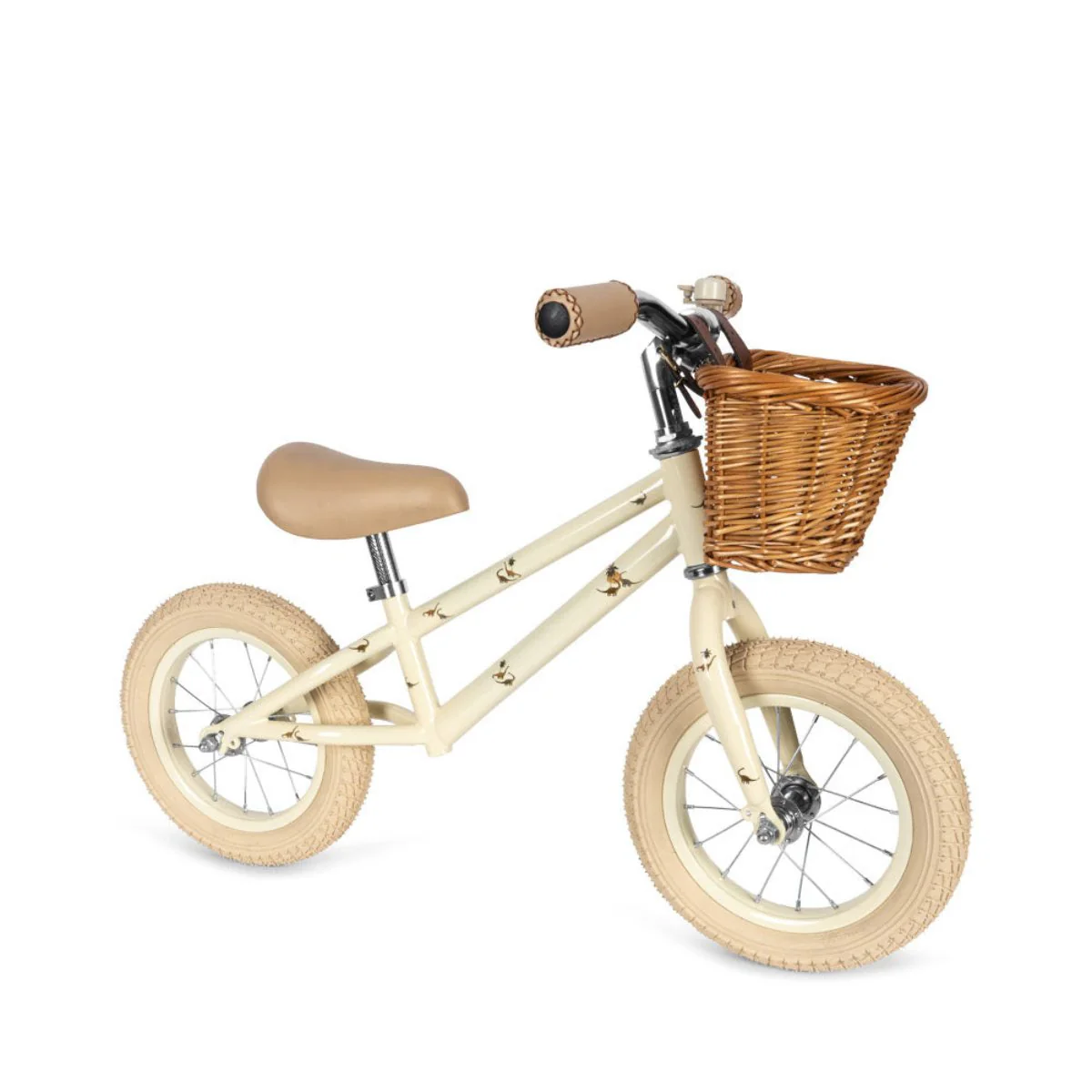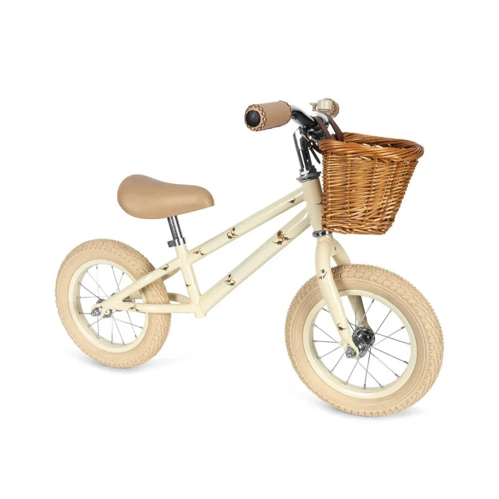 Emmène-moi faire un tour !. Voici notre draisienne de Konges Slojd pour les graines de cyclistes qui veulent apprendre à faire du vélo. Son design léger et son cadre en acier robuste rendent la draisienne facile à piloter et légère à pousser lorsque les petits pieds sont fatigués. Matériaux: Cadre et sonnette en acier. Poignées et siège en cuir artificiel. Roues en caoutchouc. Panier en osier.