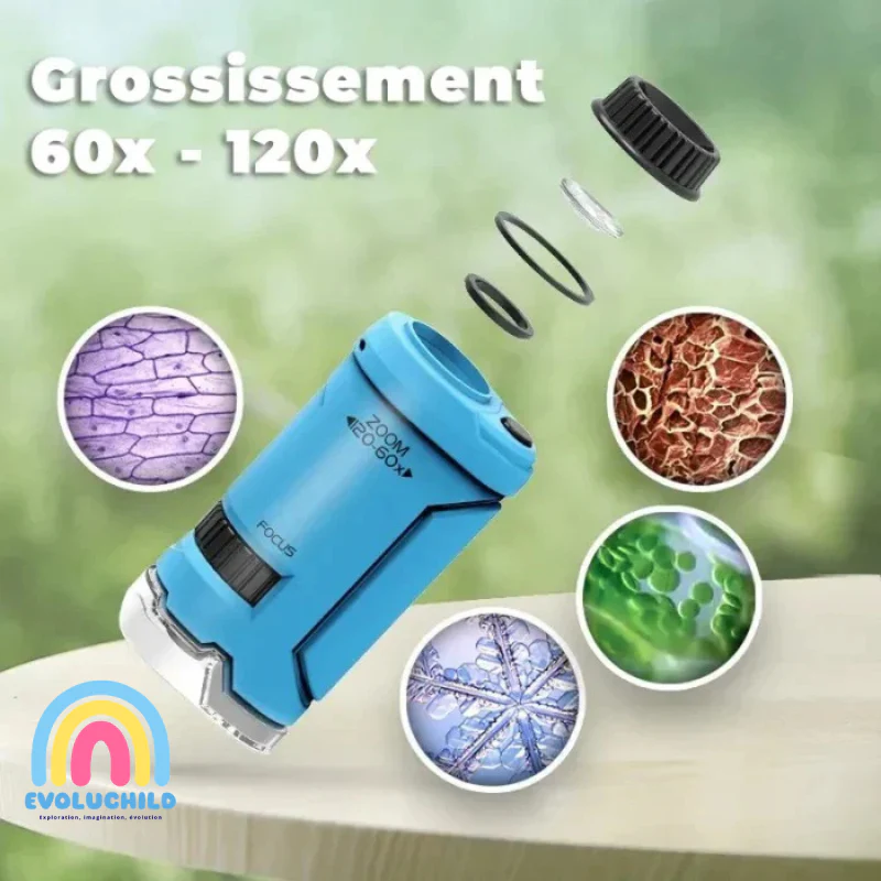 - Zoom réglable de 60X à 120X : pour dévoiler des détails incroyables et captiver l’imagination de votre enfant.