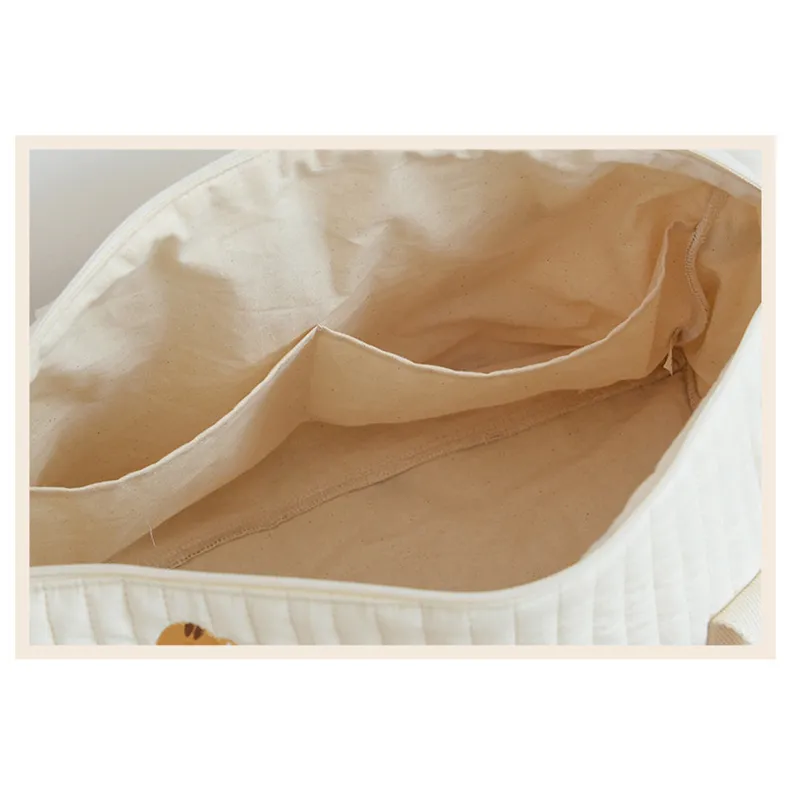 Découvrez notre grand sac à langer en coton, le compagnon parfait pour les mamans modernes. Avec ses motifs brodés délicats et sa couleur beige chic, ce sac n’est pas seulement pratique, mais aussi un véritable accessoire de mode. Idéal comme cadeau de maternité, il est conçu pour transporter tout le nécessaire de bébé avec élégance et facilité.