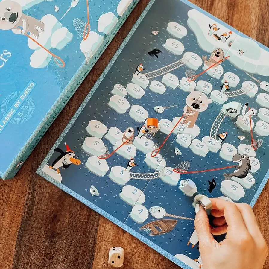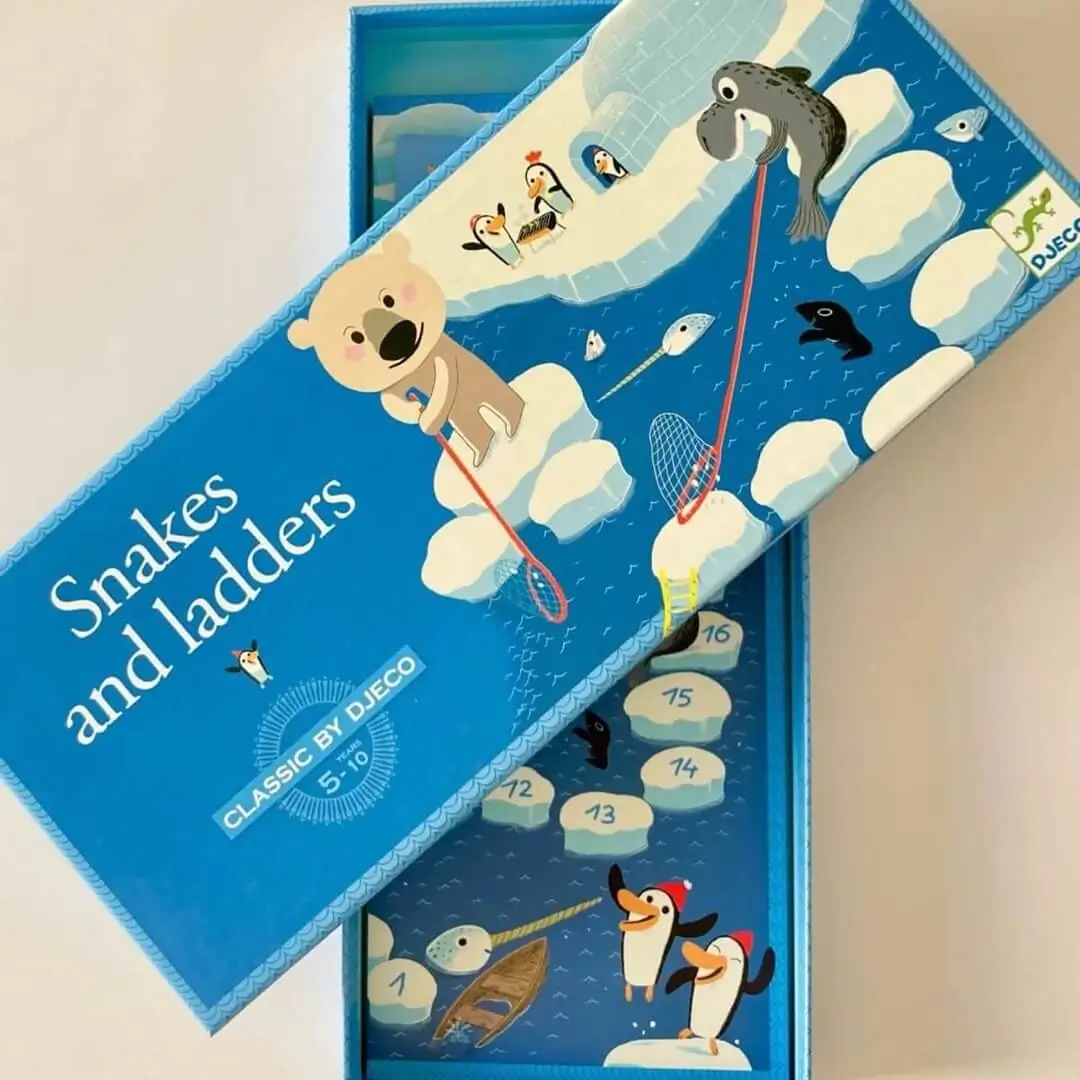 Le célèbre jeu d’échelles et serpents revisité avec des pingouins engagés dans une course effrénée sur la banquise. Si les échelles permettent d’arriver plus vite, attention en revanche aux épuisettes qui font redescendre !