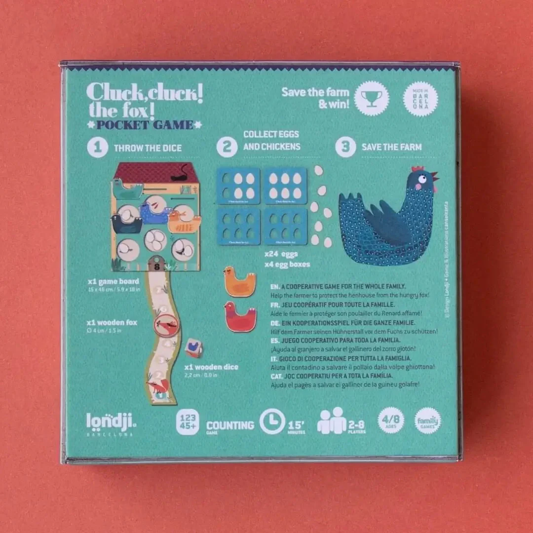 Préparez-vous à une course excitante dans ce jeu de société rapide et palpitant ! Le lancer de dés vous permettra-t-il de sauver un œuf ou une poule, ou devrez-vous rapprocher le renard rusé du poulailler ? Le sort des poules est entre vos mains…