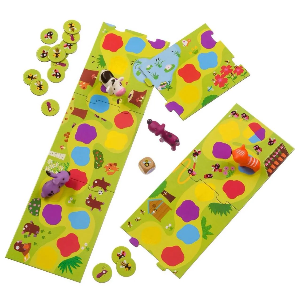 Un jeu de parcours spécialement conçu pour les jeunes enfants dès 2 ans et demi avec un plateau de jeu en puzzle de plus d’un mètre de long!