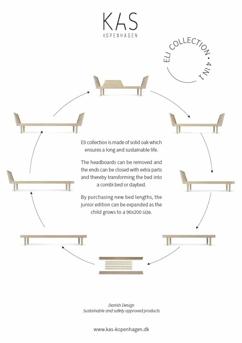 La version junior peut être agrandie grâce à l’achat de nouvelles longueurs, accompagnant la croissance de votre enfant. Kas Copenhagen privilégie un design fonctionnel et versatile : le lit Eli peut être utilisé dans la chambre d’enfant, mais aussi dans un salon, un bureau ou un chalet, s’adaptant à différents styles d’intérieur. Ses pieds coniques et ses fixations robustes reflètent le design signature de Kas Copenhagen, alliant minimalisme et élégance.