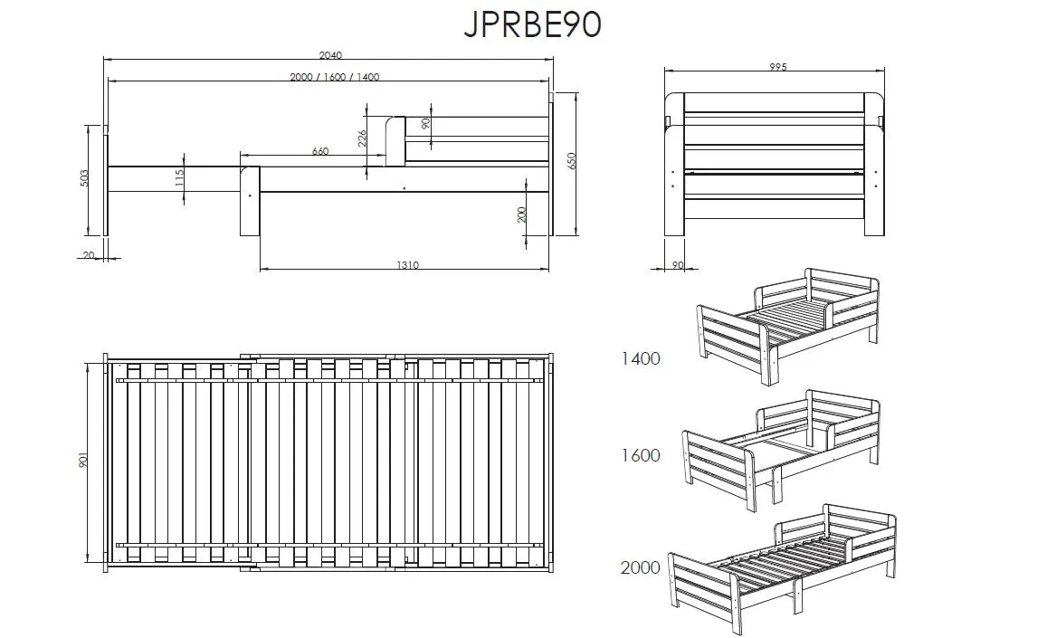 • 3 évolutions possibles : 90 x 140 cm – 90 x 160 cm – 90 x 200 cm