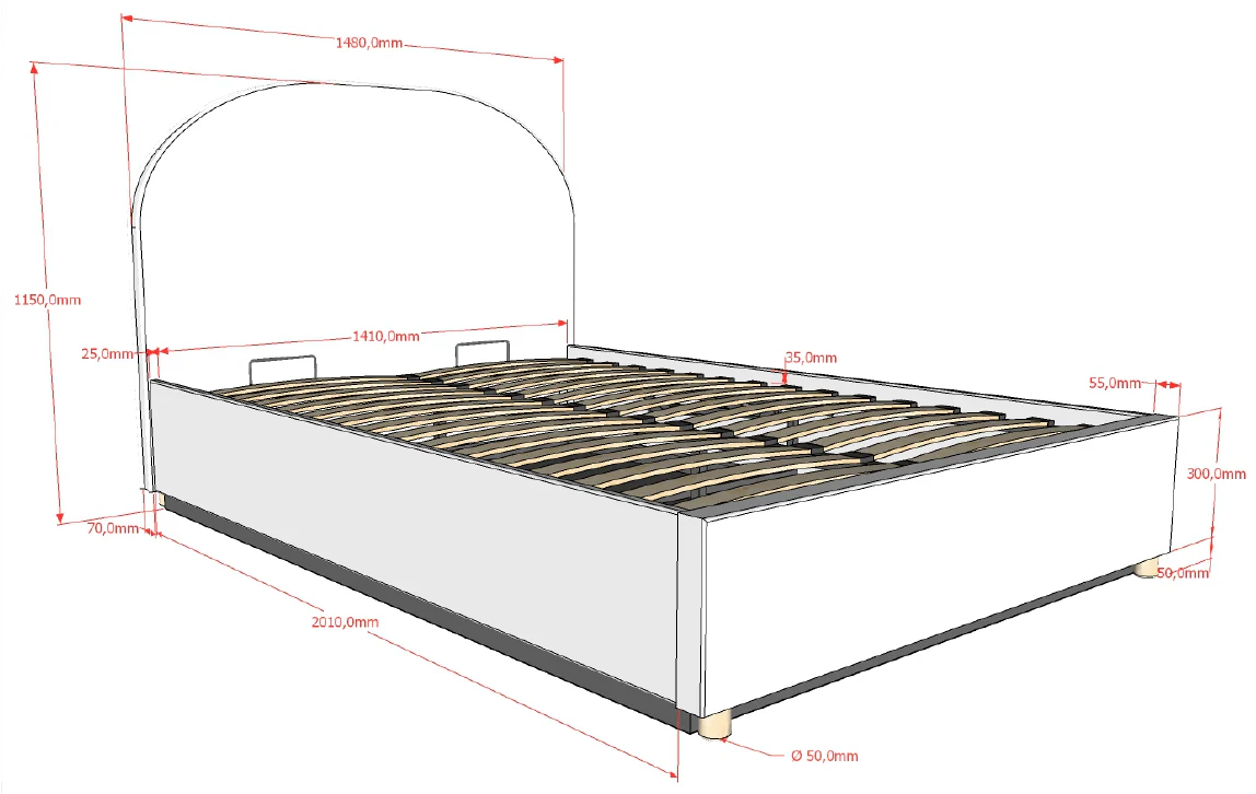 - Sommier inclus, compatible avec tout matelas 140 x 200 cm