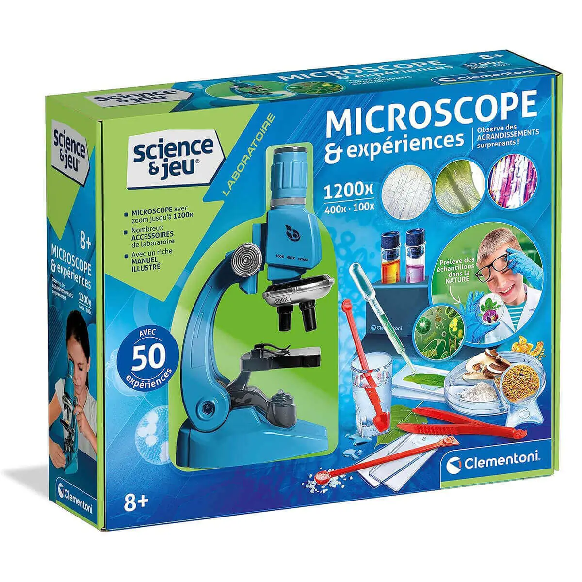 • Riche matériel fourni pour observer le monde qui nous entoure : lames en plastique, verres, pipettes, loupe et plus!