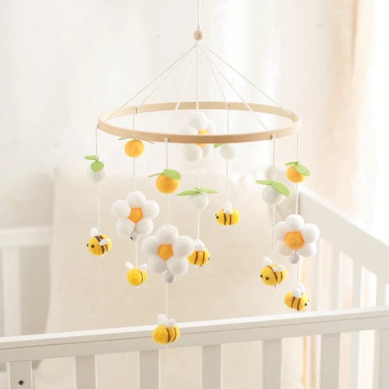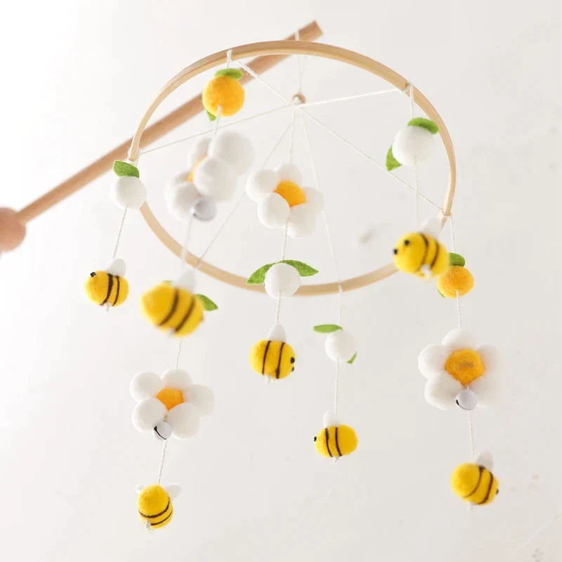 Figurines en Tissu tout doux : Les abeilles et nuages captivent et apaisent votre bébé, offrant un spectacle visuel rassurant.