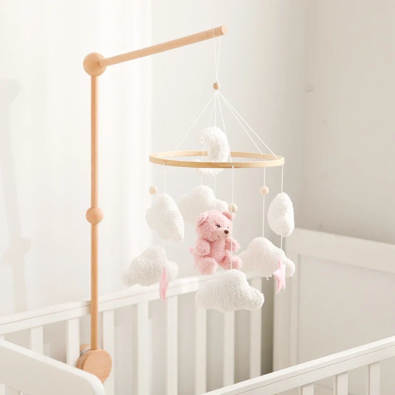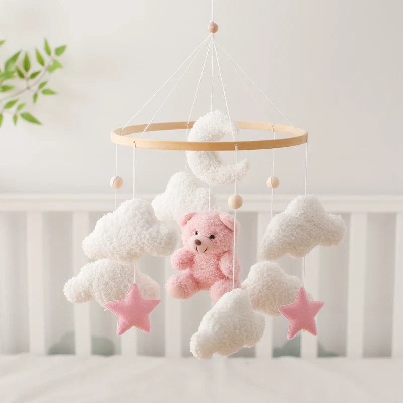Figurines en Tissu tout doux : Petit ours rose, nuage et étoiles captivent et apaisent votre bébé, offrant un spectacle visuel rassurant.