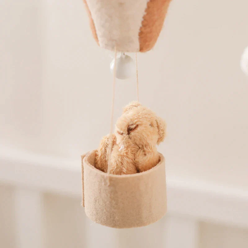 Offrez à votre bébé un univers tendre et poétique avec ce joli mobile montgolfière. Suspendu au-dessus de son lit, il flotte doucement comme un petit voyage dans les nuages. Petit ourson fièrement installé dans sa montgolfière invite votre tout-petit à rêver, à s’apaiser et à s’éveiller dans un monde rempli de douceur.