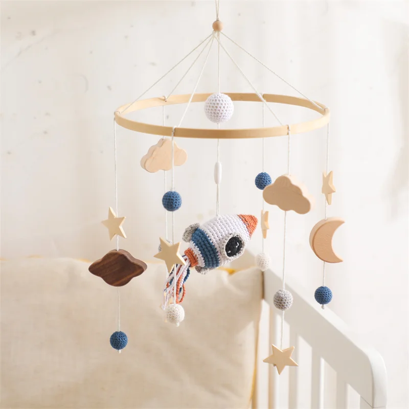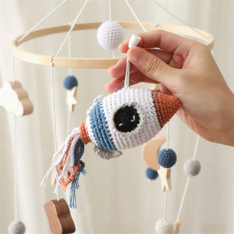 Ce joli mobile fusée en crochet amènera bébé dans ses rêves doucement lors des nuits agitées