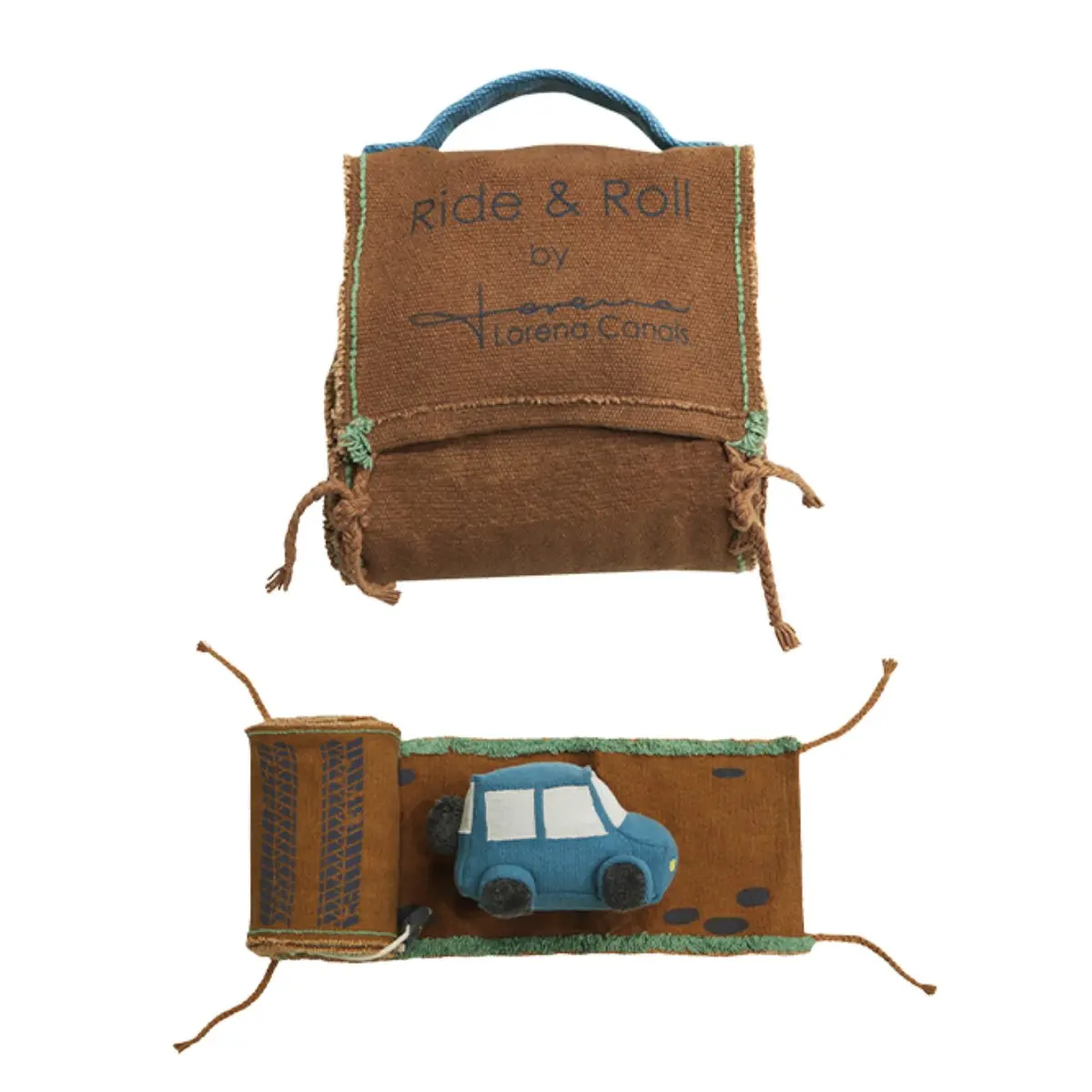 - C’est le moment de s’amuser, vroom-vroom ! Avec l’ensemble de jeu Ride & Roll, les enfants s’amuseront à dérouler un long chemin en toile autour de la maison et à le parcourir avec le bus en peluche qui complète le set—une toile en coton de 4 mètres de long pour laisser libre cours à leur imagination !