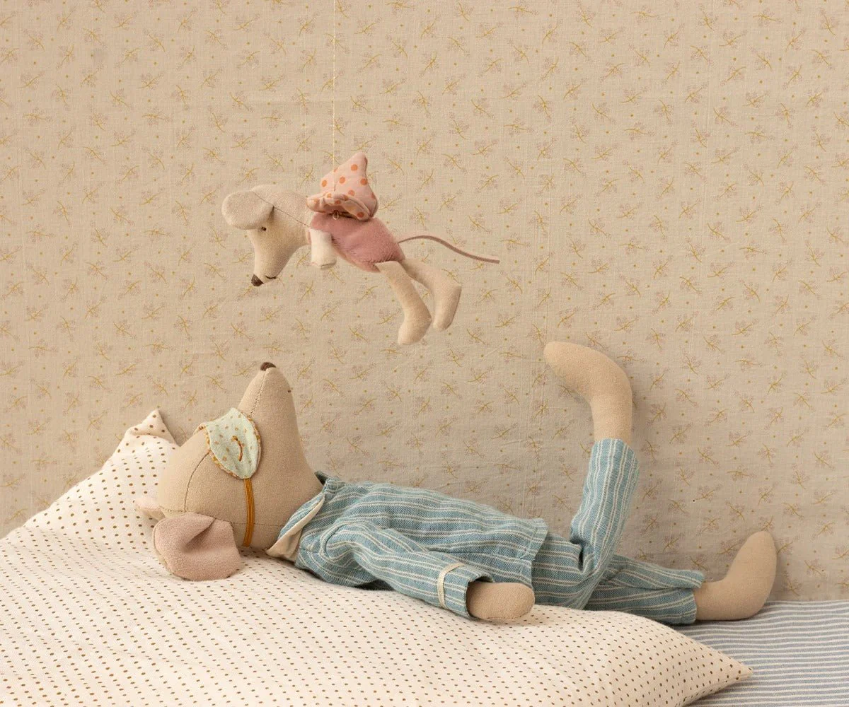 La Petite Souris Fée Maileg, Rose fait partie de la collection souris Maileg et invite à des aventures magiques et imaginatives ! Conçue avec soin, elle est dotée d’ailes souples et d’une ficelle dans le dos pour voler ou se suspendre, parfaite pour le jeu créatif ou la décoration.