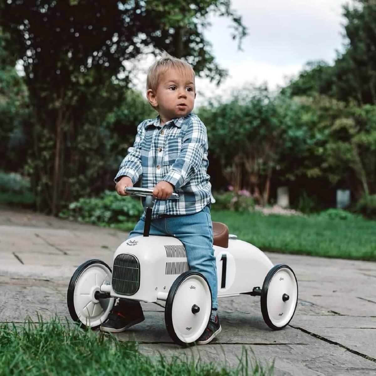 Porteur voiture de course vintage – Blanc